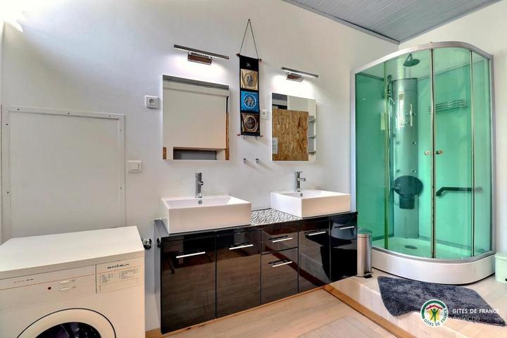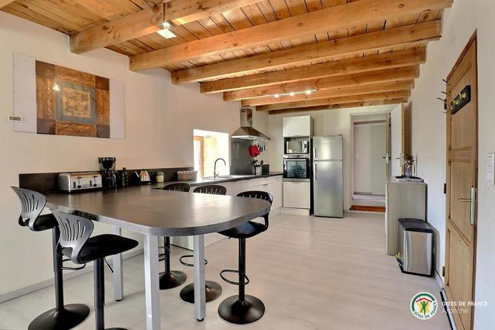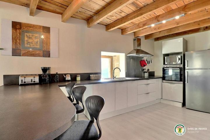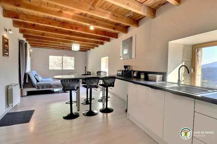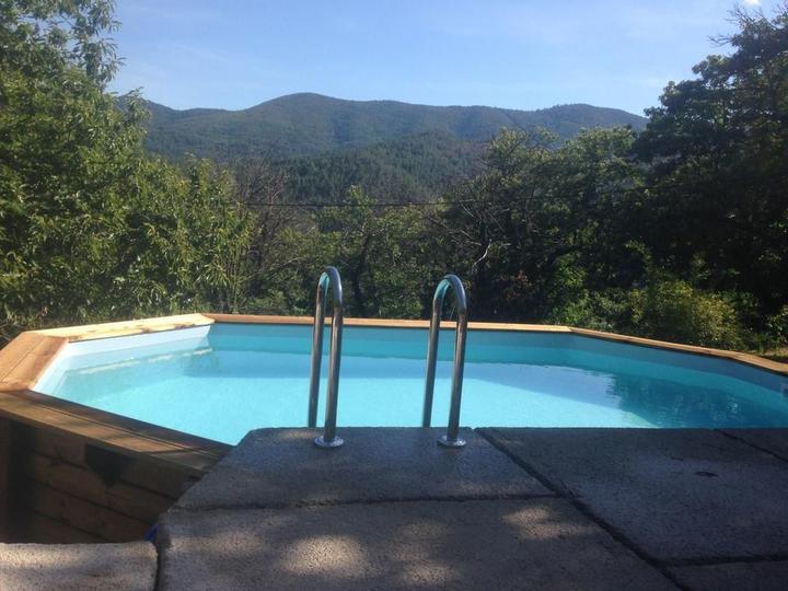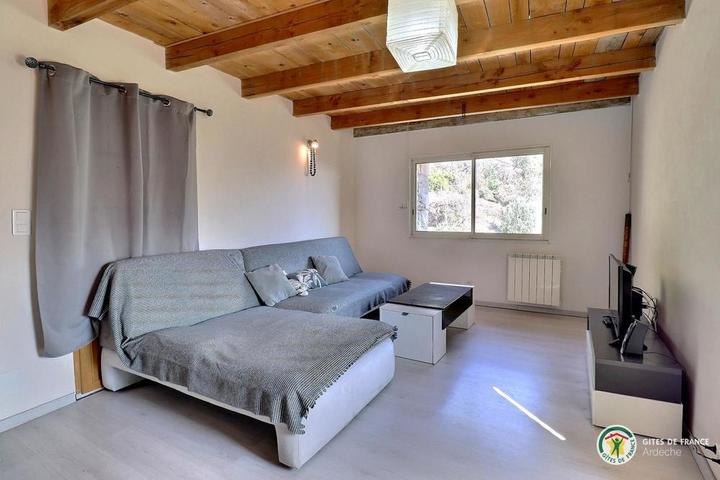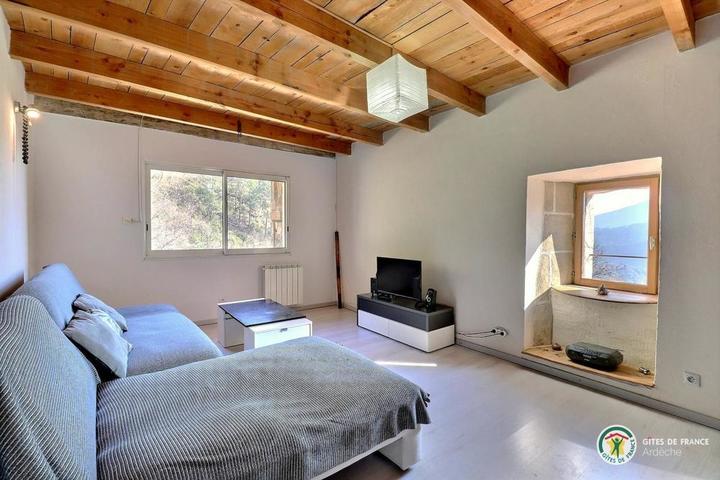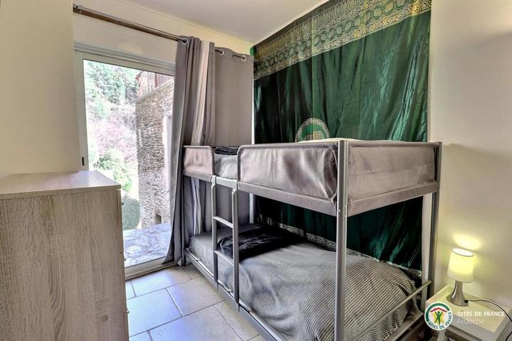 Situé à 11 km des Vans (tous commerces, services et activités), en plein cœur de la superbe vallée du Chassezac, vallée Cévenole réputée pour ses endroits de baignade, nous vous accueillons à la Combe au gîte de Bonelli, dans un environnement encore sauvage et très préservé. Sur place, nous vous proposons une multitude d'activités et de loisirs : Jacuzzi, aire de jeux pour les enfants, jeux de boules, ping-pong, piscine hors sol sécurisée par une alarme. Baignade et pêche dans le Chassezac situé à 5 km. Le gite bénéficie d'une belle pièce à vivre avec cuisine équipée ouverte sur le salon avec canapé d'angle, TV écran plat, connexion internet, 1 chambre (1 lit 140), 1 chambre (2 lits 90 superposés), 1 coin nuit équipé de 2 lits en 80 x 200 jumelables à la demande en grand lit 160, WC indépendant, salle d'eau avec douche d'angle cabine, double vasque, lave-linge, terrasse exposée au levant. Coins détente aménagés à l'ombre avec vue sur la rivière Chassezac. Parking situé en contre bas de la propriété. *INFO PISCINE : du 1er mai au 30 oct // 5m50 x 3m40