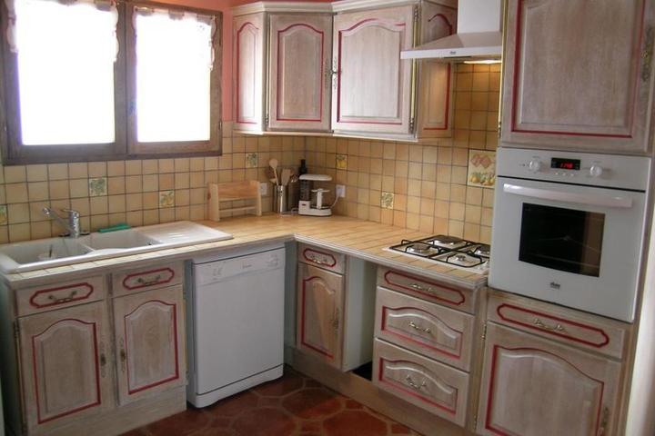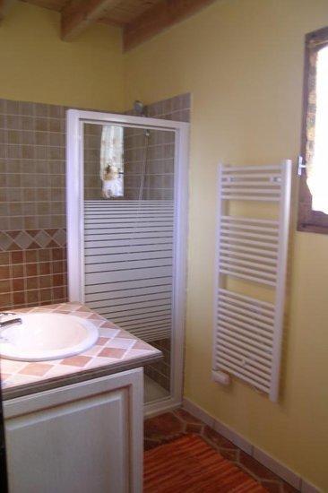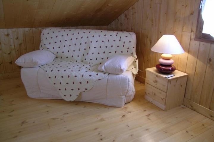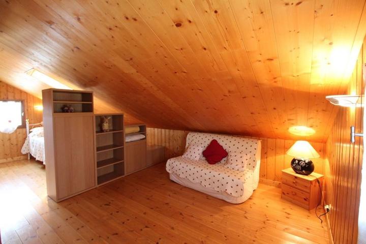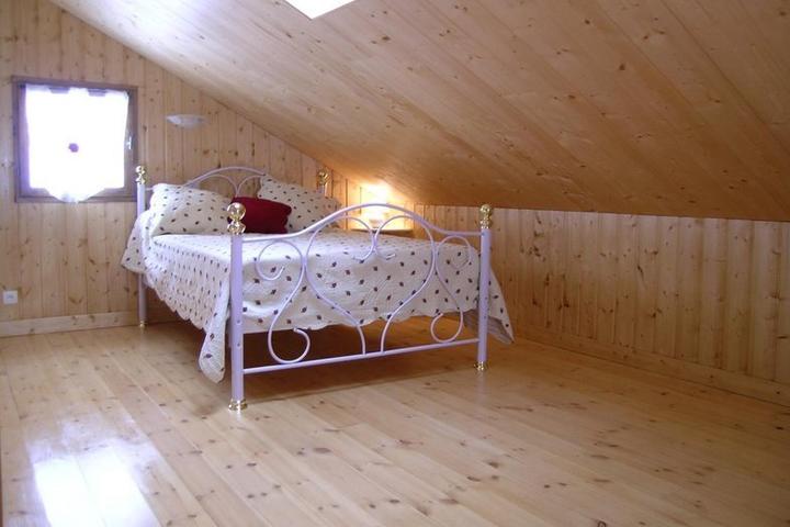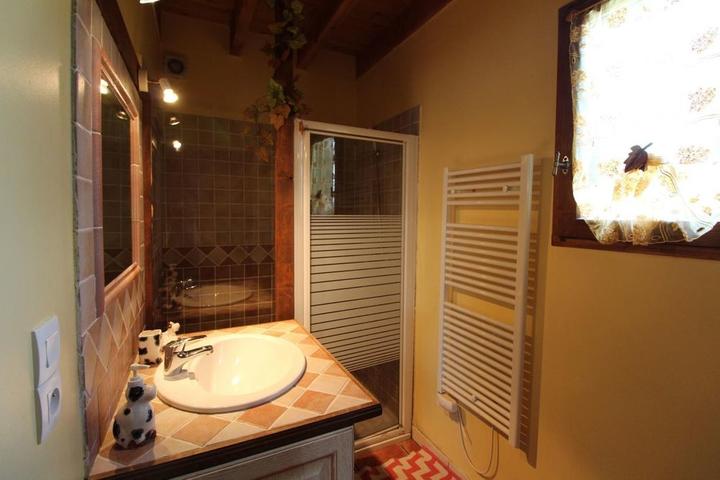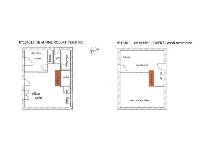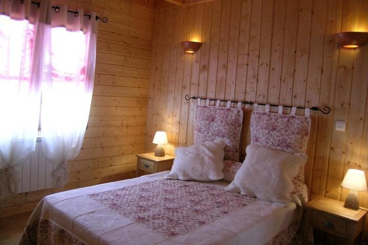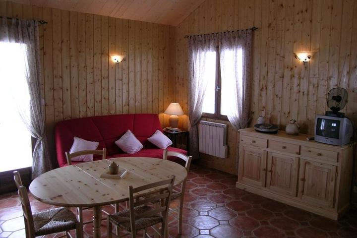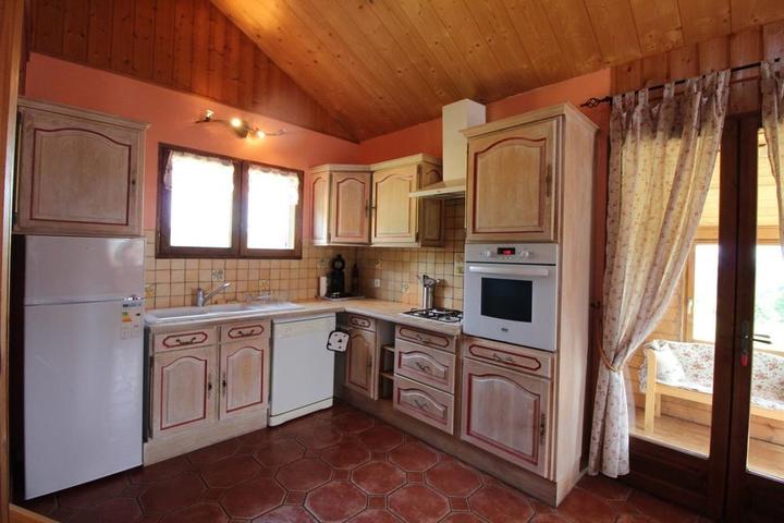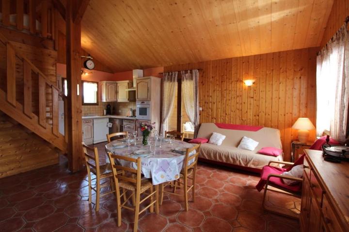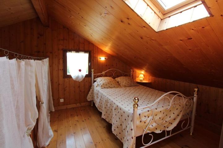 Séjour avec coin salon et coin cuisine intégré, 1 ch au r.d.c (1 lit 2 pers), 1 mezzanine avec 1 lit 2 pers., 1 lit 1 pers., convertible 2 pers, s.d'eau avec grande douche cabine, wc, cellier avec lave-linge et sèche-linge, chauffage électrique et poêle cheminée (bois fournis le weekend/ 40€ la semaine), grande terrasse ensoleillée, garage, cave, grand terrain.
