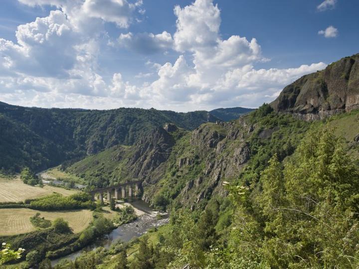 Surplombant les Gorges de l'Allier, se dessinent les vestiges de l'ancien château des Montlaur démantelé au XVIIème siècle sur ordre de Richelieu "parce que repère de brigands"