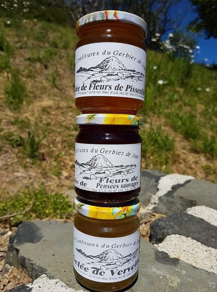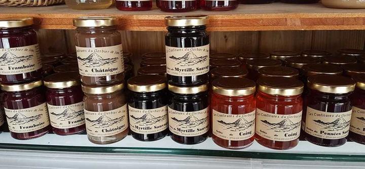 Fromages de vache, de chèvre et confitures. Stand au Mont Gerbier de Jonc en saison, selon les conditions climatiques.