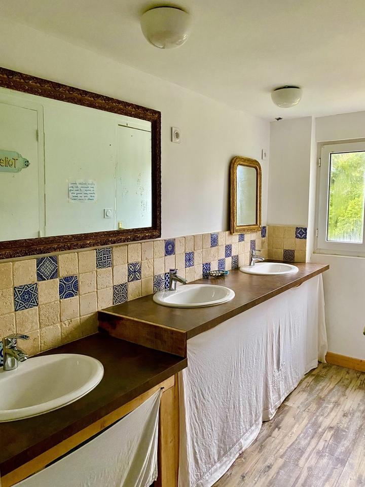 Espaces collectifs (cuisine équipée, salle à manger , 3 douches à l'italienne, 3 lavabos, 2 WC) et 5 chambres. Lit bébé et lit pliant.