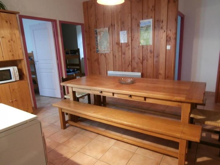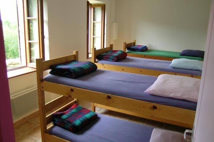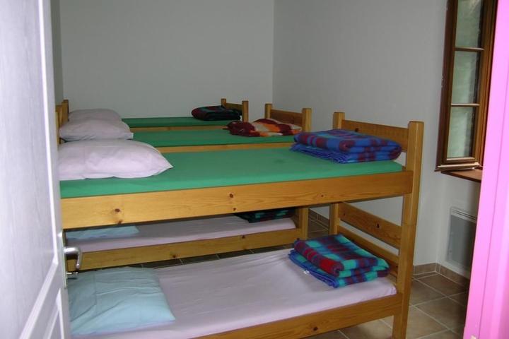 Le gîte : 2 dortoirs de 6 personnes en lits superposés, 1 bloc sanitaire avec 2 douches cabines, WC, pièce à vivre équipée d'un coin-cuisine.