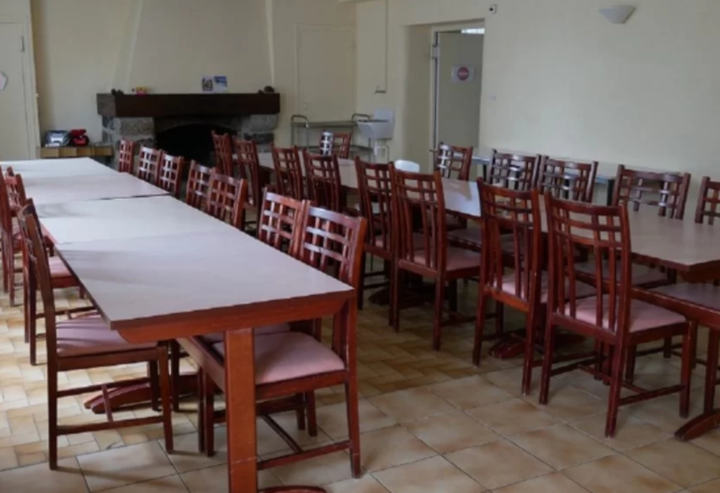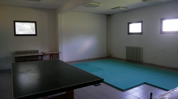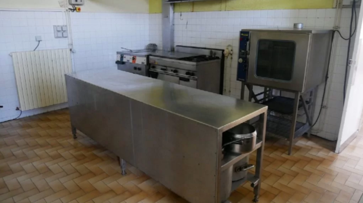 A disposition : Deux salles communes, une cuisine professionnelle et une salle de gym.