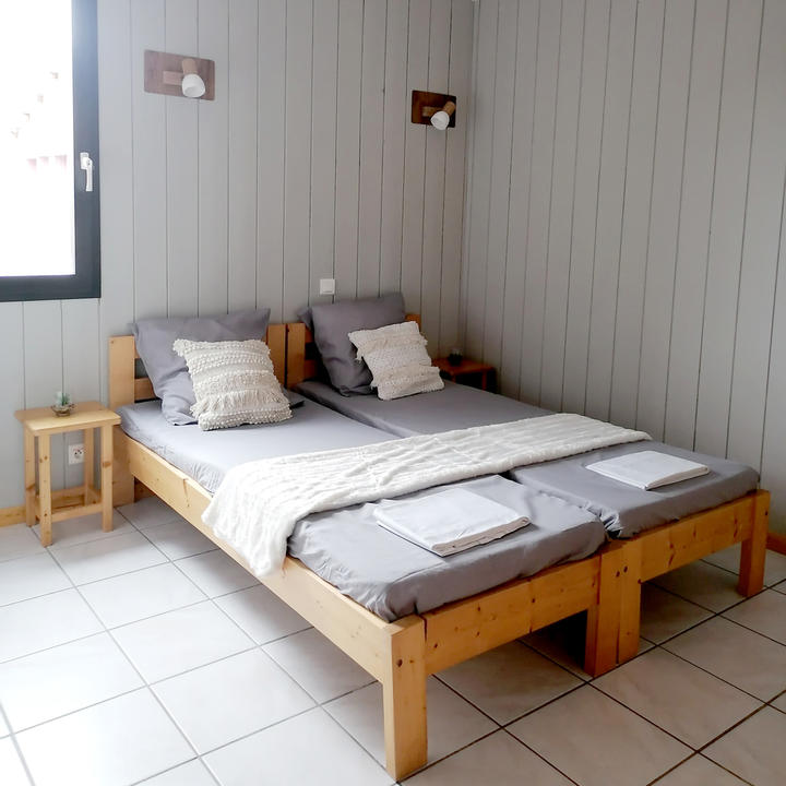 La réservation vous est proposé à la chambre (de 2 à 4 personnes) ou pour l'ensemble de l'hébergement (de 12 à 24 personnes).