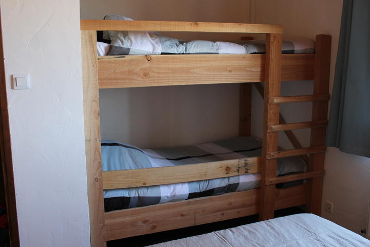 Étage : 4 chambres indépendantes - chambre n° 1 : 1 lit double en 140, deux lits simples superposés en 90 (enfants) – chambre n°2 : 1 lit double en 160 + un lit en 90, - chambre n°3 : un lit double en 140 – chambre n° 4 : un lit double en 140 + un lit en 90. Un WC indépendant. Petite bibliothèque.