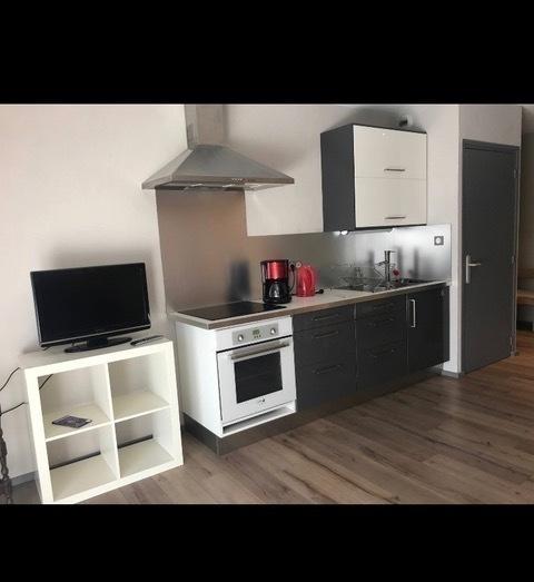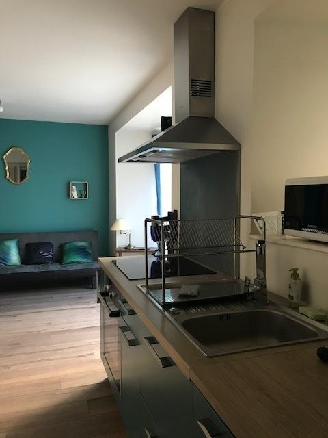 Séjour avec cuisine entièrement équipée avec four , plaques à induction, et tout le nécessaire.