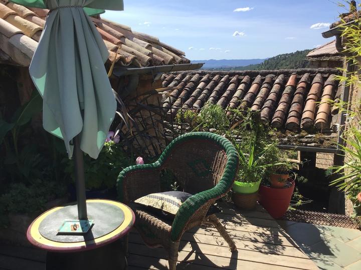 Le couradou (terrasse couverte) et le solarium offrent également des vues magnifiques sur la vallée et sont des espaces de détente et de convivialité très agréables;