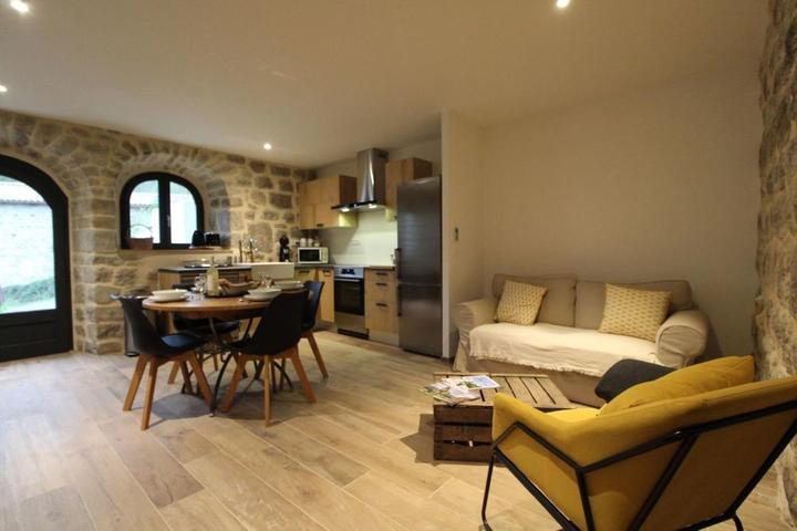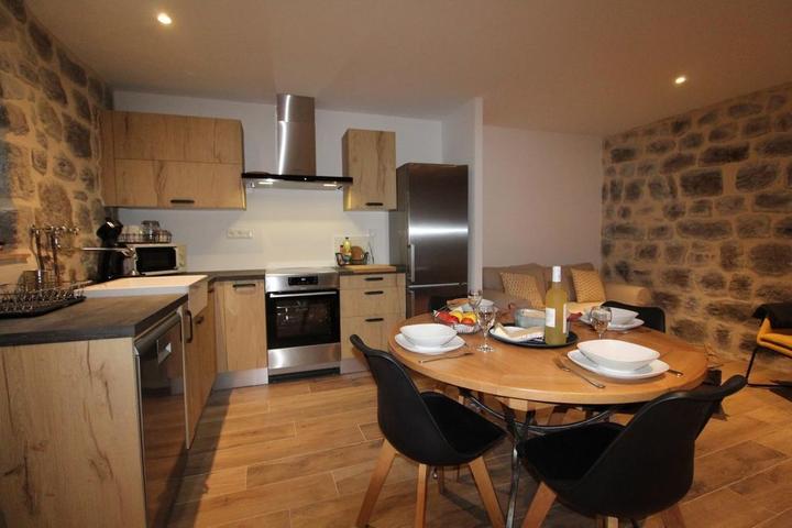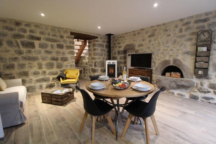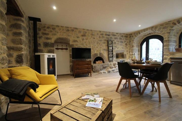 Nous sommes situés au cœur de la vallée de la Besorgues, entre montagne Ardéchoise et bassin d'Aubenas - station thermale de Vals les Bains (cinéma, thermes, soins, casino, piscine), cette vallée est réputée pour la pêche en rivière 1ère catégorie, le canyoning ou encore la randonnée. Notre gite douillet et très confortable est aménagé dans un petit hameau très calme, il bénéficie d'une belle terrasse ensoleillée avec salon de jardin et barbecue ainsi que d'un terrain à proximité immédiate. Au rdc, vous trouvez le séjour avec coin cuisine intégré entièrement équipé, le coin salon avec canapé, fauteuil, tv écran plat, connexion internet, poêle à granulés, wc indépendant avec buanderie et lave-linge. A l'étage, 1 chambre (2 lits 90x200 jumelables), 1 chambre ( 1 lit 160x200), un lit 90 en mezzanine, salle d'eau avec douche italienne grande dimension et double vasque, wc indépendant. Draps + Linge de maison et de toilette fournis, chauffage électrique et bois.