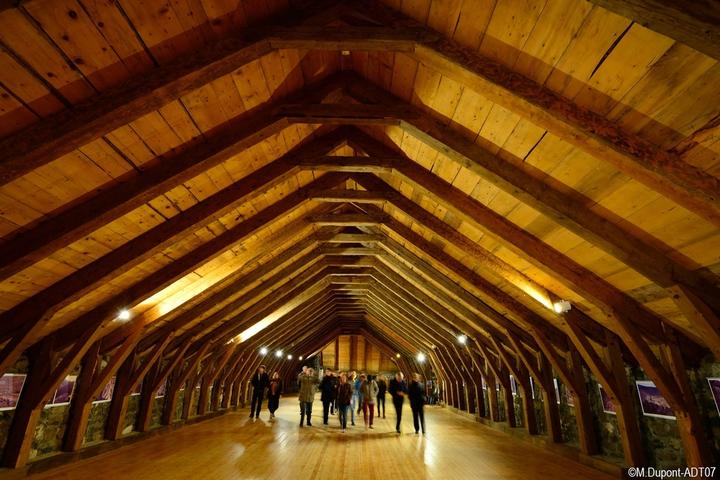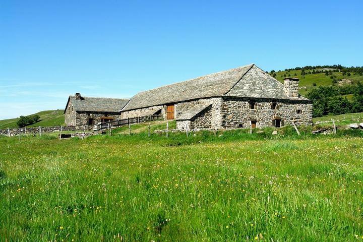 Location de VTC - VTT à assistance électrique et de rosalies. C'est une des plus belles granges au toit de lauzes (phonolites) de la Montagne Ardéchoise, mesurant 51x12.40 m hors œuvre. On pénètre dans l'étable par un arcas, situé à l'ouest près de la montée de la grange.