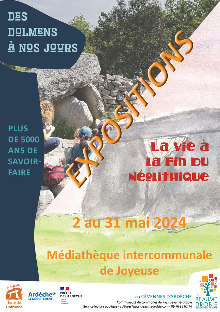 Deux expositions complémentaires. La première explique la vie quotidienne au temps des dolmens et la seconde, photographique, retrace la découverte des dolmens et des innovations de cette période par des élèves des écoles élémentaires du territoire.