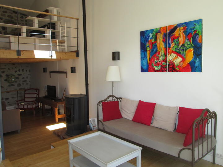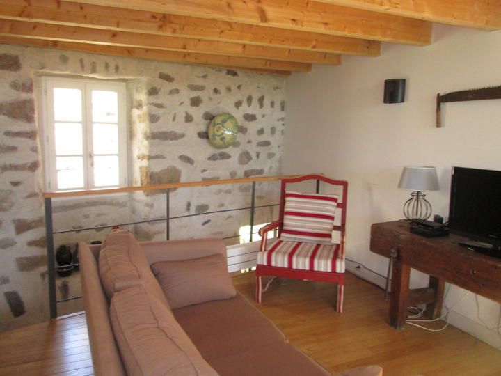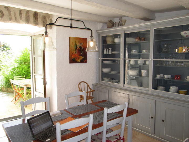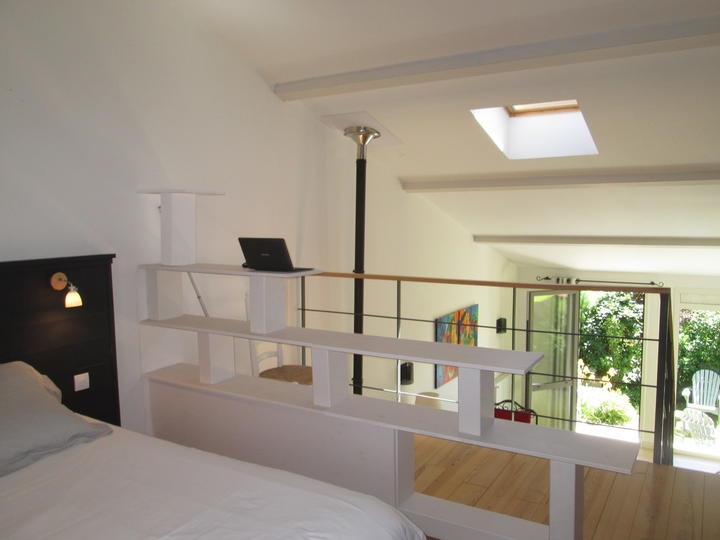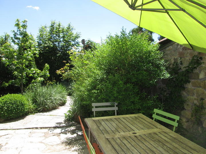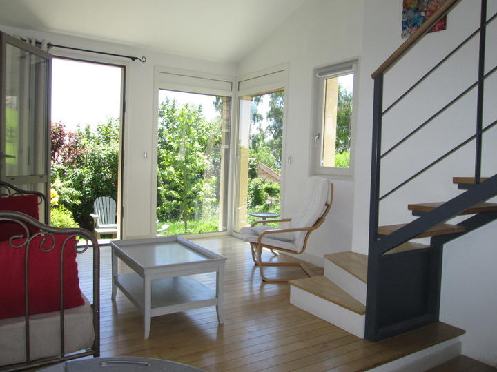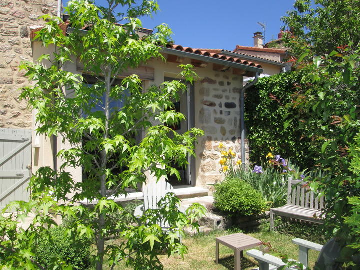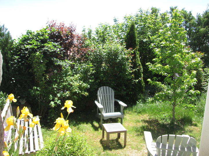 Entrée côté rue, petit hall d'entrée, buanderie, puis accès au niveau 1 : cuisine équipée, salon avec canapés, fauteuils, TV écran plat. Jardinet arboré et fleuri en saison et terrasse équipée d'un salon de jardin. Mezzanine avec 1 lit 2 pers. en 160x200, espace bureau, salle de bains avec baignoire d'angle et lavabo sur meuble. WC. Niveau mansardé avec une 2ème chambre pouvant accueillir de 2 à 3 pers. (1 lit deux pers. en 160x200 et 1 lit clos 1 pers. en 90x190), salle d'eau attenante (douche) et lavabo sur meuble). Chauffage central. Wifi. Draps compris dans le tarif. Lieu idéal pour se reposer.