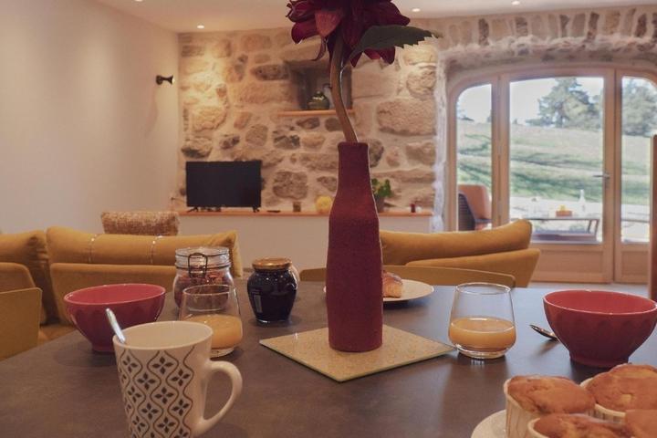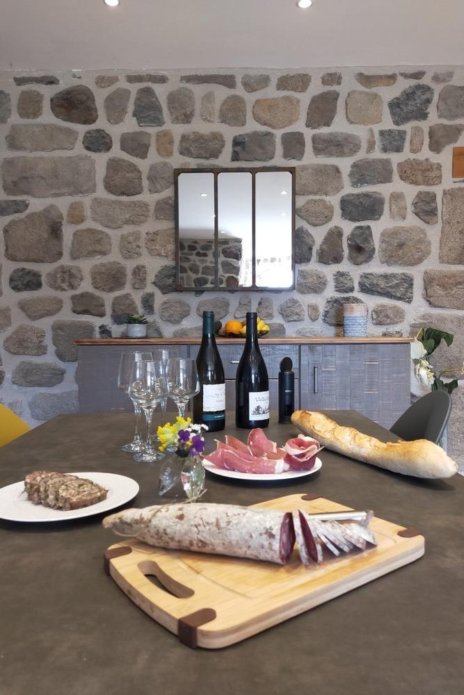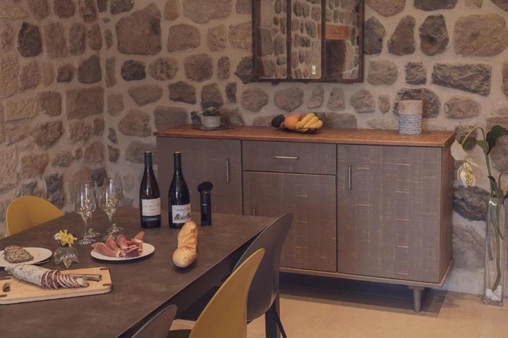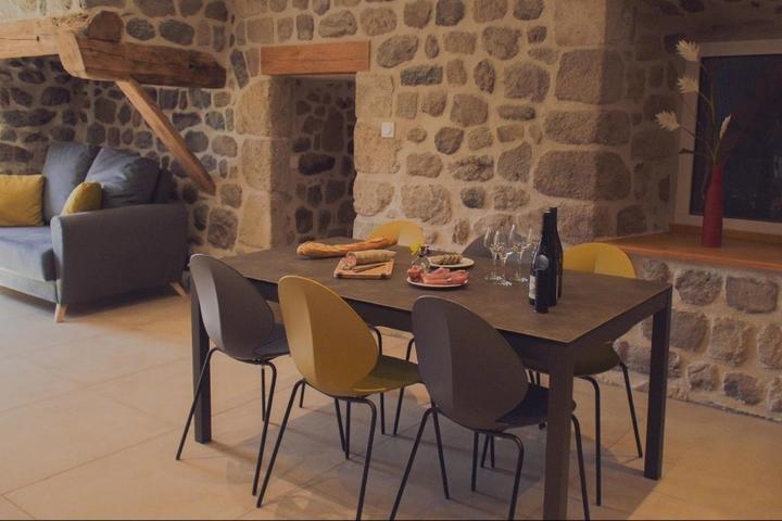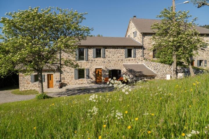 Ensemble de 2 gîtes combinables, avec une capacité de 2 à 14 personnes (gîte "le cherchemuse" 4 personnes et gîte "le griffou" 6 à10 personnes), entièrement rénovés avec des matériaux de qualité sur le plateau ardéchois, à proximité du Lac d'Issarlès.