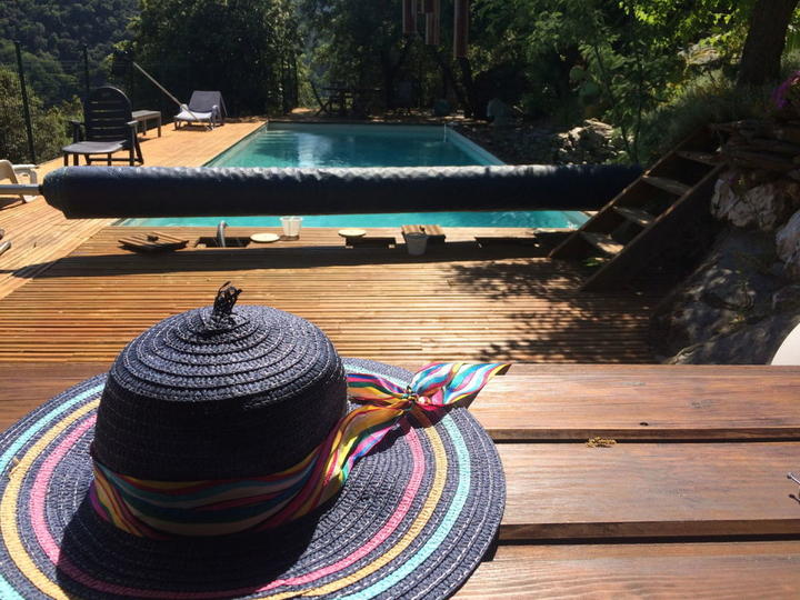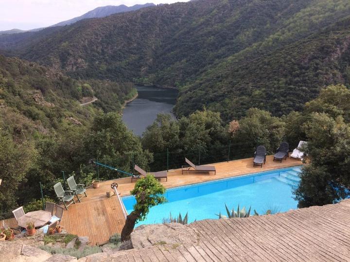 Mas en pierre avec piscine et jacuzzi, au-dessus de la rivière pouvant accueillir 8 personnes (3 chambres).