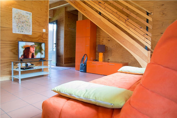 Micro-ondes, Réfrigérateur, Canapé convertible, Cuisine américaine, Accès Internet privatif Wifi gratuit, Lit 160 cm, Matériel de repassage, Accès Internet privatif Wifi, Lit 90 cm, Hotte aspirante, Cheminée / Poêle, Séjour / Salle à manger, Aspirateur, FourHotellerie capacités
