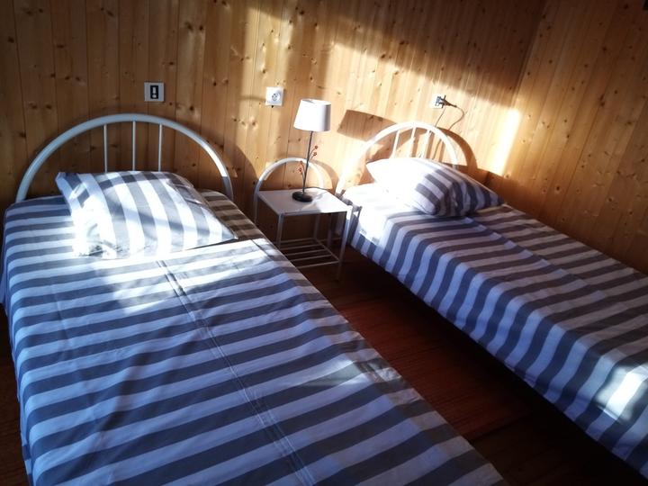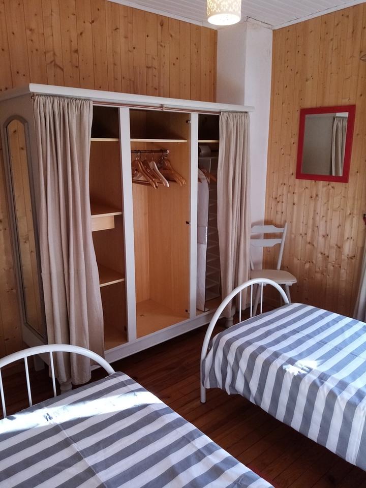 Chambre n°1:1 lit double(2 personnes) chambre n° 2: 2 lits simples(1 personne).