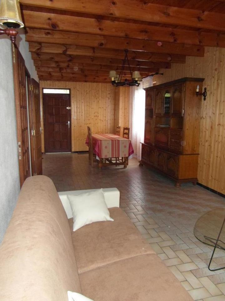 - 1 grand salon/salle à manger (un canapé convertible et une télévision), cheminée avec insert dans le coin salon